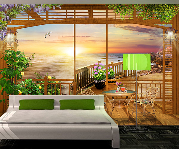 Фотообои Красивый вид с террасы. Вечерний закат на море