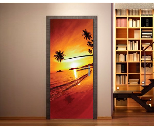 • Наклейка на дверь Тропический пляж на закате, Таиланд