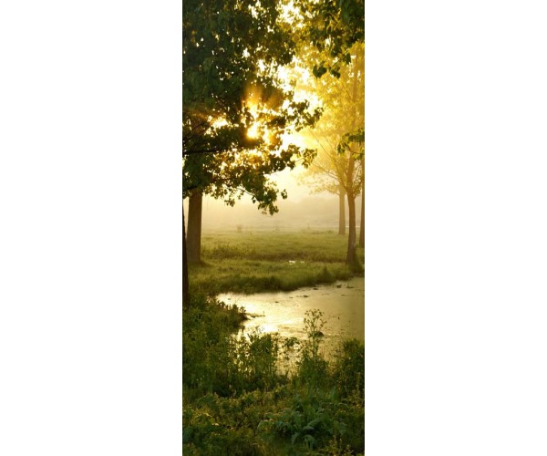 Наклейка на дверь Утро в лесу вблизи болота