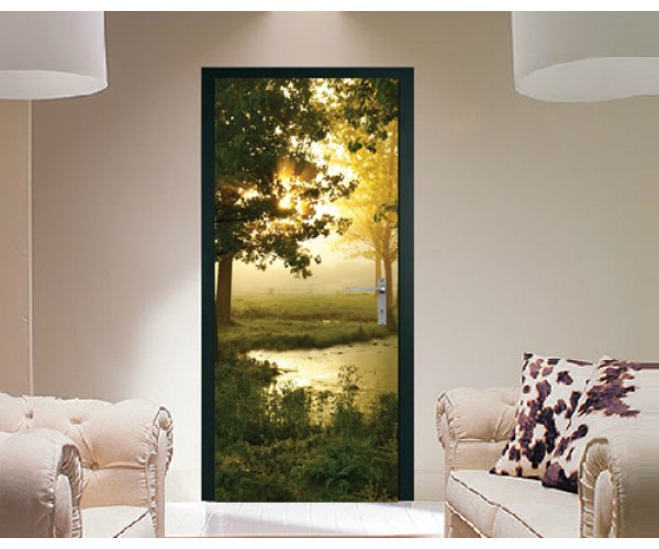 • Наклейка на дверь Утро в лесу вблизи болота
